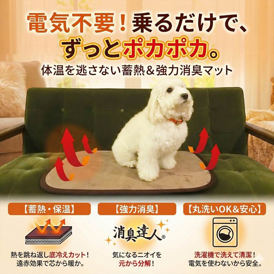 乗っかるだけで、ぽかぽかあったか。電気いらずでお留守番も安心です。